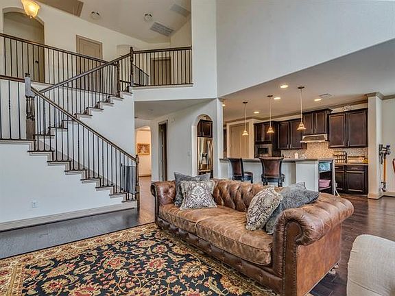 Award winning Community featuring every amenity you could desire (3 pools, parks, sports courts, hike trails, etc) 2 story wall of windows in the living area offering tons of natural light. Chef's dream kitchen with huge island/breakfast bar, Silestone counters, upgraded cabinets, stainless steel appliances & gas cooktop. Large covered patio with flat backyard perfect for a pool. Phenomenal LTISD schools. Study with French doors down, Game room/Media room/Movie theatre upstairs (However you want to use)