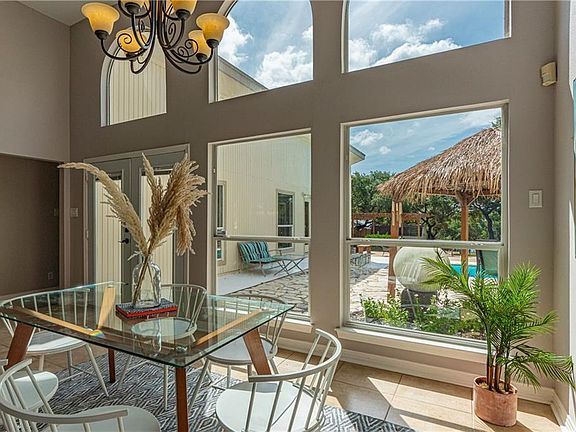 Best Value on Lake Travis. 1.4 acres with boat dock & ramp, 3000sf+ one story home, pool, outdoor BBQ area, cabana, volleyball court & boat storage. This waterfront retreat is gated and has successful STR history grossing over $100k from part time rentals. Main home is updated 1 story with true 4 bedrooms, double master suites. Kitchen w/SS appliances, subzero fridge, wine cooler. Living area w/13 ft ceilings, fireplace & built-ins. Large kitchen pantry, laundry room, study nook and tons of natural light!