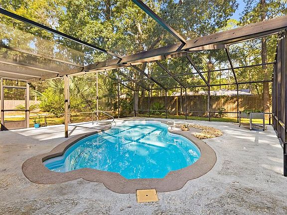 Under contract-accepting backup offers. Looking for a beautifully renovated pool home in Northwest Gainesville for under $450K? This is the one! Situated on nearly half an acre in the highly sought-after Deer Run neighborhood, this move-in-ready home features stylish upgrades throughout, an RV pad, a NEW HVAC, 2018 roof, and energy-efficient windows. As you arrive, you’ll notice the wide driveway leading to the oversized two-car garage. A charming concrete walkway welcomes you to a covered lanai with Spanish tile and elegant double-door entry. Inside, the thoughtful floor plan begins with a hallway to the right that leads to the private quarters. Two spacious bedrooms share a beautifully updated guest bath with granite countertops, matching tile, and a shower/tub combo. The primary suite serves as its own retreat, featuring a versatile bonus room that’s perfect for an office or sitting area, a huge walk-in closet, and a luxurious en suite bath with a dual vanity and walk-in shower. To the left, the home opens up into a massive blend of common areas designed for entertaining and everyday living. The gourmet kitchen, designed by a professional chef, includes stainless steel appliances, custom wood cabinetry with soft-close drawers and pull-outs, and ample counter space for meal prep and hosting. The kitchen overlooks the formal dining area, anchored by a custom wood-burning fireplace, perfect for cozy gatherings. For more casual dining, enjoy the breakfast bar that flows effortlessly into the living room, which offers views of the sparkling pool. Two large sliding glass doors open to the screened-in pool deck, ideal for cookouts and gatherings. Relax to the sound of birdsong and the gentle waterfall feature that enhances both the pool’s ambiance and water quality. With a new pool heater, this outdoor oasis is ready to enjoy for years to come. The fully fenced backyard offers plenty of space for recreation, pets, or gardening. A large side gate provides easy access to the gravel RV pad, perfect for safely storing your RV or boat when you’re not exploring Florida’s beautiful state parks. Every detail has been thoughtfully updated and maintained. Whether you’re looking to entertain, unwind, or explore, this home checks every box. Schedule your private showing today and experience all that this spectacular home has to offer!