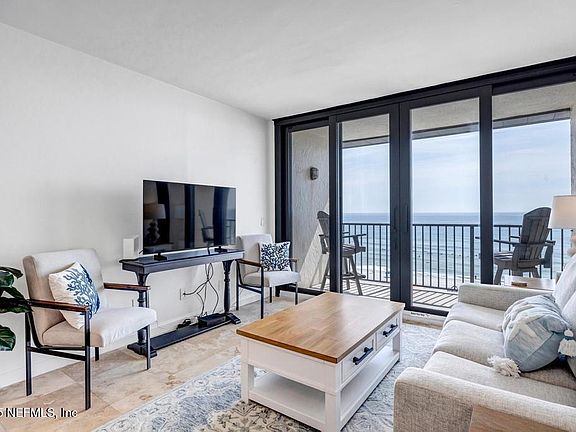 Step into a bright, airy space with modern coastal finishes and thoughtful upgrades throughout. Open-concept living and dining area with large sliders that lead to your private balcony where you can enjoy quiet mornings sipping coffee sitting atop the captain chairs over looking the beautiful white sands and vast ocean views. Stylish, fully stocked kitchen with quartz countertops and stainless steel appliances. Spa-like bathroom featuring a frameless glass shower and premium finishes. Tranquil bedroom with a king-size bed, high-end linens, and plenty of closet space. Secure building with elevator access. Large ocean sided sundeck and community pool. Private beach access just steps away. Beach essentials included with beach chairs and towels. Located just south of the Jacksonville Beach Pier and minutes from local shops, restaurants, and nightlife