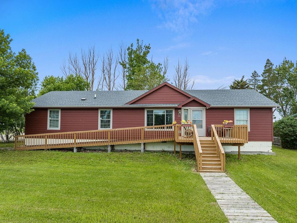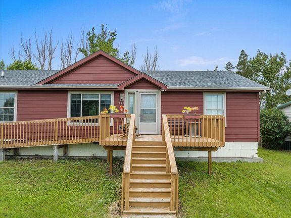 Looking for a little bit of peace and quiet? Glenburn may be just the place for you! This quaint town is within 10 minutes of Minot Air Force Base & 25 minutes of Minot. This home constructed in 2014 features 3 bedrooms, 2 bathrooms and an attached two stall garage. When you first approach the property, you're sure to appreciate the town of Glenburn and the beautiful fishing pond directly across the street. The house is a rich red color and has a large front porch. When you enter the home, you're greeted into the open concept dining, living, and kitchen area. The flooring in this area was recently replaced and the interior was repainted recently as well. The kitchen has plenty of cabinet space and a large island. The living room has plenty of natural light and room for your furniture. There is also a secondary living space off of the dining area that would make a great playroom, den or office. There are two bedrooms near this area as well, and a shared full bathroom. The primary suite is on the other end of the home and features lots of closet space, plus a massive ensuite. The ensuite has double sinks, a nice shower and a soaker/jacuzzi tub. The laundry room is off of the attached garage, and has a perfect mudroom space. The garage is large enough for two vehicles. The backyard is newly fenced off, and past the fence is the owned propane tank. Contact your preferred agent today for an opportunity to purchase this slice of Glenburn!