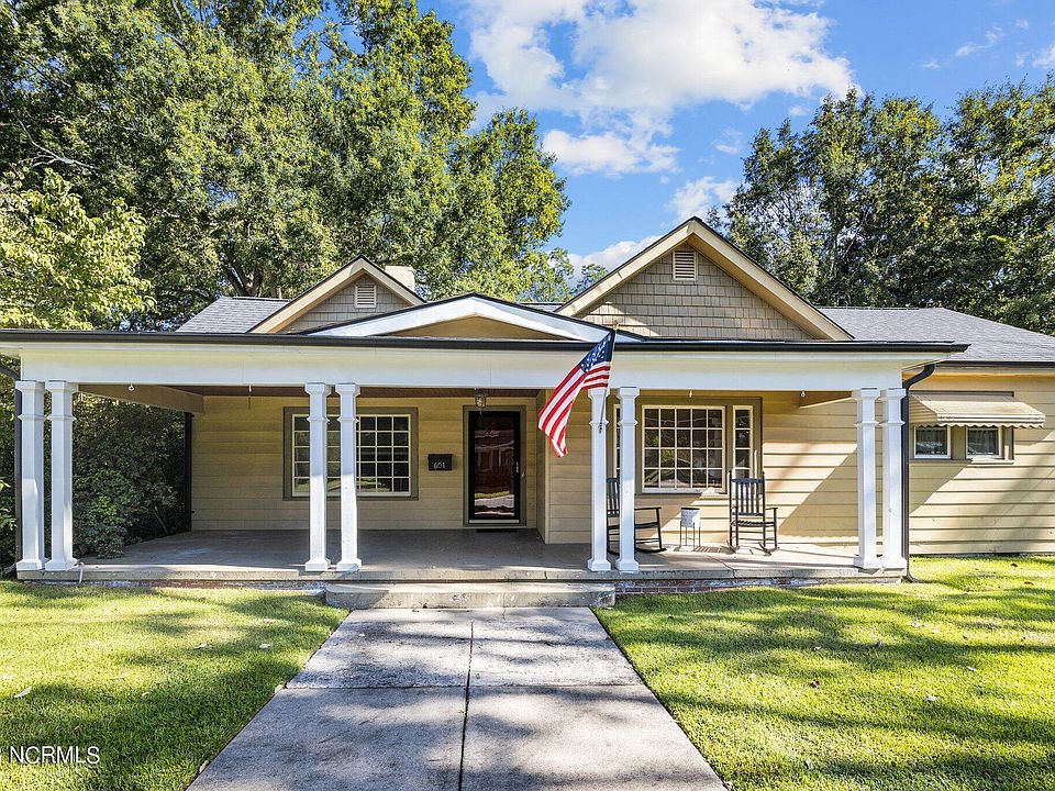 $5000 use as you choose seller credit! You won't want to miss the stunning, well- preserved 1912 home located in the heart of Ayden's downtown historic district! This spacious abode boasts character and charm with details like hardwood flooring throughout, arched doorways, & chandeliers original to the home, this house is bound to captivate your heart. With modern updates in the kitchen and bath, it's move-in ready! Nestled on a sprawling .73 acre lot adorned with majestic elms & oaks, your own private orchard of fruit-bearing trees/shrubs, a charming screened-in gazebo, and a 2 car detached garage with UFROG, this property is a gem you'll want for your very own. It is conveniently located 15 minutes from Downtown Greenville where you'll find shopping, dining and much more! The home has a 2019 roof! Schedule your showing today!