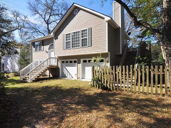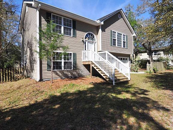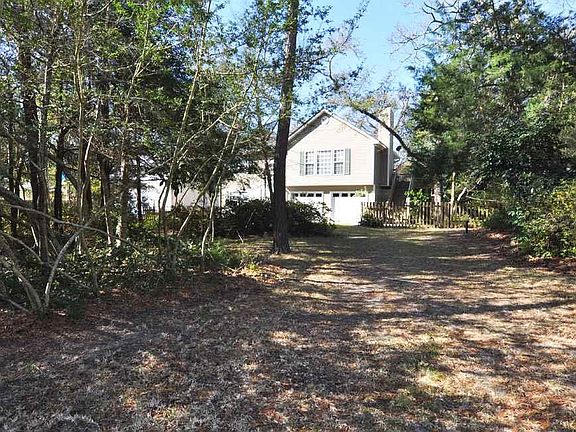 If owning a beach home is in your plans, this is the place for you. This 3 bedroom, 2 bath single family home offers a two car garage to store your golf cart, and play downstairs. The home has two bedrooms and one bath on the ground level and a short walk up the stairs opens into a large area with a fireplace. This main level also offers the master bedroom with it's own bath. The living area and stairs have hardwood flooring for easy clean up. This home is a short walk to the beach or golf cart ride. Situated on a large lot, this home has mature azaleas and live oaks. The back yard is fully fenced for your pets. Square footage is approximate and not guaranteed. Buyer is responsible for verification.