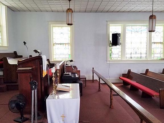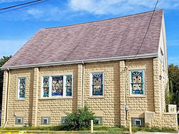 Built in 1904, this sturdy brick Church is located at the corner of 5th and Chess streets in Coraopolis. Large congregation hall with pews, raised alter with choir seating. Small back 'office' located off the alter. There is a loft in the back of the church (front of the building). Building also has a meeting hall and small kitchen in the basement. Building does have central air. Back of the building has off-street parking for 1, possibly 2 cars.