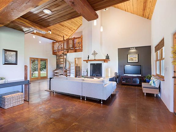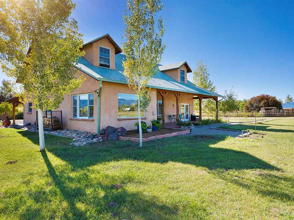 This stylish, 3-bed, 3-bath Contemporary country house with big views is less than two miles from the Taos Plaza. Set on three tranquil acres, between an acequia and the Rio Fernando, this Rastra-Block residence is a sparkling remodel. The cook's kitchen sports sleek, new cabinetry, quartz and butcher-block counters, a marble backsplash, black, stainless appliances, and a stained-concrete floor. Fresh, modern vanities and fixtures in the primary bath, new lighting, a spectacular living room chandelier, user-friendly laundry room and generous pantry add to this home's sturdy appeal. The second story floorplan is split with two bedrooms and two baths on one wing and a large family room, bedroom, or studio on the other. Deep porches in both front and rear mean easy entertaining in every season. The ample acreage provides plenty of room for a garage, workshop, guesthouse or animal pens. With sensible covenants and a conservation easement on adjacent lands to protect the spectacular views, this is a delightful property in a choice location.