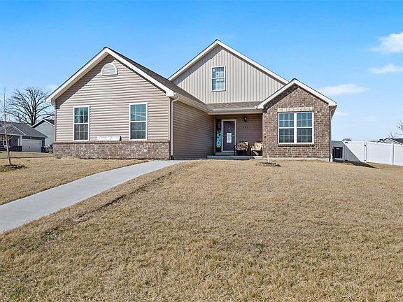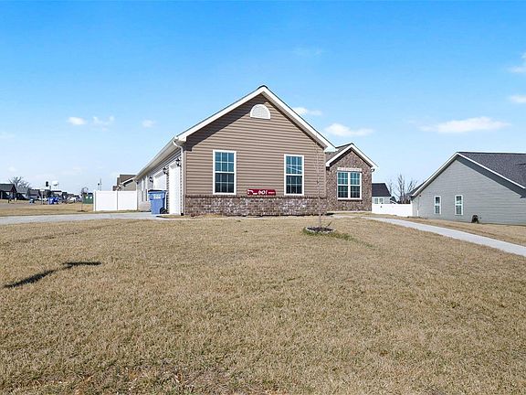 Showings start Saturday. The home is 2 years new! Spacious 3 bedroom, 2 bath home on a corner lot with side entry 3 car oversized garage. Entry foyer opens into cathedral style vaulted great room open to dining room and kitchen, With a custom split floor plan and easy access laundry, nothing was and open and split bedroom floor plan. First floor laundry was updated with cabinets and sits outside master bedroom. Kitchen offers quartz countertops and 42" cabinets, under cabinet lighting, center island, pantry, extra water line for a coffee bar, and stainless steel appliances. Master bedroom with en-suite bath includes his and hers closets and double vanity. Second and third bedroom each have walk-in closets. An office, rough in bath and room to expand awaits the new owner downstairs. New white vinyl privacy fence, oversized patio, 24' pool, pergola and irrigation system make for perfect back yard, home is wired for security and ready for your cameras.