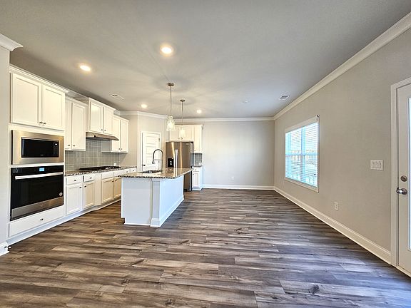 Lots of natural lightOpen conceptOversized work islandStainless steel appliancesSpacious dining areaTile backsplashGranite counter tops