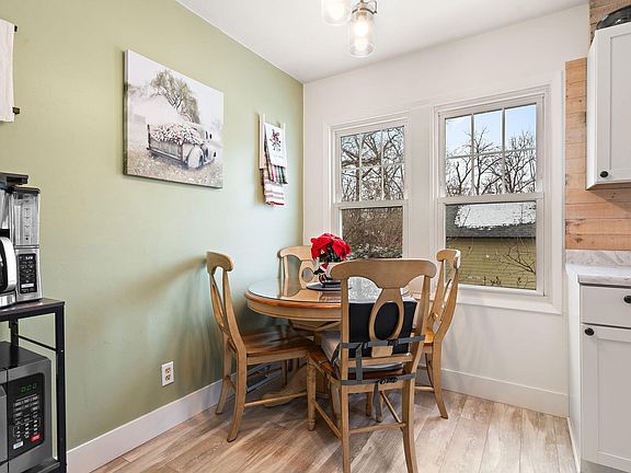 Welcome to this quaint and well-maintained 3-bedroom, 1-bath home featuring a brand-new roof (March 2025), including a complete tear-off with new OSB and shingles for long-lasting peace of mind. The main floor offers a functional layout with a comfortable kitchen and eating area, two bedrooms, and a full bath. Upstairs, you'll find a spacious third bedroom and an open flex space perfect for a home office, reading nook, or play area. Both sides of the attic are easily accessible and provide excellent storage options. The basement offers even more possibilities with ample room for additional living space, a laundry area, and a newer washer and dryer that stay with the home. Outside, enjoy a landscaped, fenced-in backyard complete with a two-car detached garage plus an additional garage in the rear--large enough for another vehicle or ideal for a workshop or storage. Situated conveniently in town, this home is close to schools, parks, and shopping. All appliances are included, making this home move-in ready!