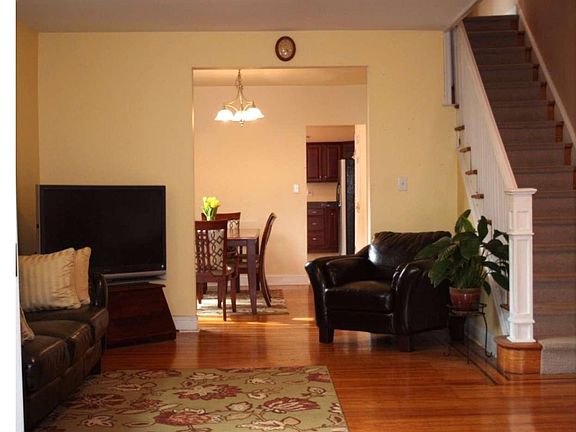 As you enter this lovely home you will immediately be impressed with the amazing naturally sunlit areas throughout starting in the office and den area. As you pass through a set of glass french doors you enter the formal living room with medium toned hardwood flooring and deep toned dual inlay borders throughout. Continue into the nicely sized dining room with pristine hardwood floors and a lovely deep set arched wall perfect for standing piano or featured artwork. The kitchen features an open floorplan with counter top seating and separate breakfast room that offers a great place to gather with family and friends. The rich cabinetry set against the neutral counter tops and stainless steel appliance bring a warm inviting feel to this wonderful space. Exit from the kitchen onto the beautiful rear deck for continued entertaining or simply relax as you cook on the grill. The second floor has three nicely sized bedrooms starting with the Master Suite with full bath and walk-in closet. The 2nd bedroom has a nicely sized custom closet and shares a large hall bath with the 3rd bedroom. The walk up attic/3rd floor is a great space that can easily be finished into a 4th bedroom with seating area and still maintain space for storage. The lower level has such a great deal of natural sunlight you may rarely use the recessed lighting throughout. With deep windows sills and large open floor plan, this lower level is a delight. The main door on the lower level leads to the side of the property and the 2nd exit which is just pass the powder room, laundry and storage area exits to the rear of the property where you'll find private parking. No need to worry about the weather as just under the deck is your personal carport for private, off street, covered parking! This house is a gem. You'll feel fortunate to pull up to a house with such lovely curbside appeal and call it your home!
