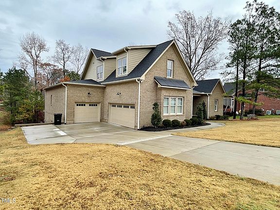 Less than one year old all brick home with 4 bed, 3 bath and 3 car side load garage with stunning custom finishes on 0.54 acre lot on established street in Broadmoor West Subdivision. Main floor Primary Suite with large walk-in closet and island. A barn door takes you in to the expansive bright primary bathroom with dual vanities, framed mirrors and oversized tiled shower and free standing tub with a floor mounted faucet. There is also a second bedroom and full bathroom on the main floor for guests or family. Stunning custom finishes abound in this open floorplan with special touches at every corner. Large picture window in family room overlooking rear porch. Enormous covered porch, with double folding doors, off the equally impressive living areas overlook private rear yard that backs on to a green area. Kitchen has gas range, white cabinetry and huge island with quartz countertop. Family room with modern gas log fireplace tiled to the ceiling, flanked by built-ins on either side. Two additional bedrooms and large flex space on second floor along with walk-in storage. Rear lower level covered porch adds additional outdoor living space to this home. All flooring is wood or tile - no carpet! A MUST SEE! Please contact Helen Hammond to schedule showings. 919-219-4475 (6 hours notice required)