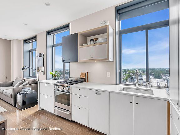 Rare opportunity to own a 9th floor duplex condominium in the desirable Eureka. With its spectacular southeast corner view, this 2br/2bth is simply perfect and will not last long. Beautiful views of the ocean, the lake, Asbury Park and as far as the eye can see. Modern European design, wood flooring, eye-catching fun with translucent to opaque glass window in the bathroom, plenty of storage via built-in cabinetry, a private storage area, off street gated parking and a place for bicycles. The Eureka is a controlled access building with a sophisticated lobby restaurant, is located in the heart of downtown Asbury Park and is conveniently near the train station for easy commutes to NYC. AS-IS sale that will not disappoint!