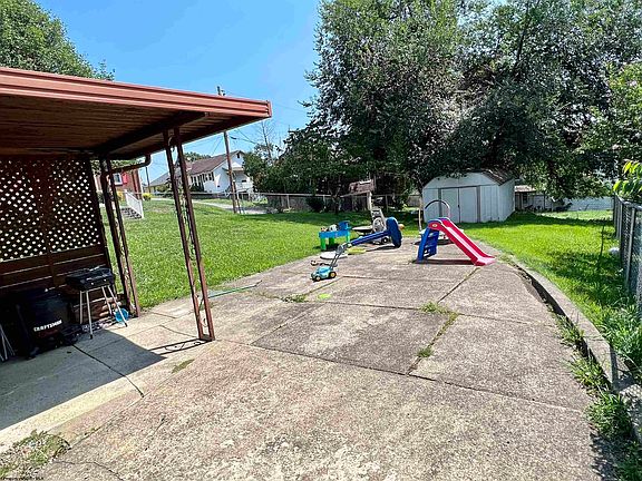 Nice brick home on a corner lot, off street parking and partially fenced back yard with storage building. The home provides living room and 2 bedrooms with hardwood floors, kitchen and full bath on main floor. Lower level has oversized gathering room currently being used as a bedroom, beautifully finished Seam Atticus flooring with epoxy fill that looks like hardwood. Age and measurements approximate. See agent remarks.