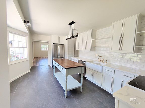 Deeded Corner Lot Downtown Fairhope. New fencing, interior doors, shower, & fresh paint too & more. Move right into this charming Downtown Fairhope cottage, located just north of town, just south of the Fairhope Yacht Club Rec Center and the new Flying Creek Nature Preserve Park (Triangle Park). This darling home sits on a beautiful corner lot just minutes from Downtown Fairhope shopping, dining, parks and Mobile Bay. The fenced yard is perfect for gatherings, grilling, playing or for your pets. This home has a nice mix of cottage and modern charm. The kitchen is updated and very sleek, with tall cabinets, open shelving, and a nice custom island. You will love the living room with the huge windows, and the oversized dining room is great for large furniture or can combo as a living/dining. Both bathrooms have been updated and have large walk-in showers, and lots of storage. There is a bonus/flex room that would make a great den, playroom office, or 4th bedroom in a pinch. It has a ton of storage cabinets. Parking is a breeze with double width driveway, an extra parking pad and a covered single carport, perfect for a car or GOLF CART. Beautiful homes all around the streets connect for some of the best exercise routes. All hard surface flooring. This is a one story home but there is 1 step into the living room and 3 into the bonus room. Buyer to verify all information during due diligence.