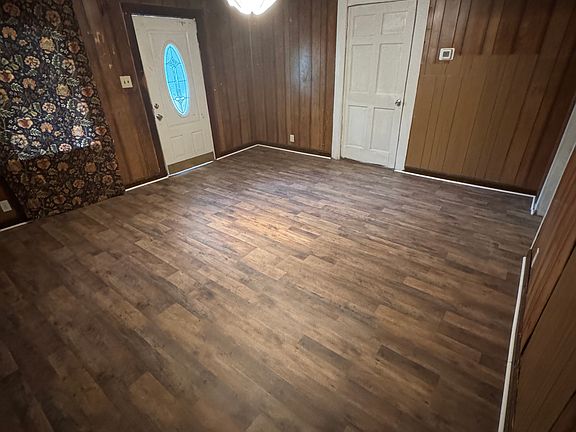 Welcome to this cozy and inviting 2-bedroom, 1-bathroom single-story home nestled in a quiet neighborhood in Raleigh. This freshly updated property features brand new wood-look flooring throughout and a fully refreshed front entrance with a beautiful newly built wooden staircase and handrails. Inside, you'll find a large living area with wood paneling and abundant natural light, perfect for relaxing or entertaining. The kitchen offers great space and classic charm with paneled walls, built-in shelving, and included appliances. Both bedrooms are generously sized with freshly painted walls and updated lighting. Additional highlights include a spacious backyard with a storage shed, a private screened-in porch area, and a walk-in closet for extra storage. The bathroom has a simple, functional layout with a full-size tub.