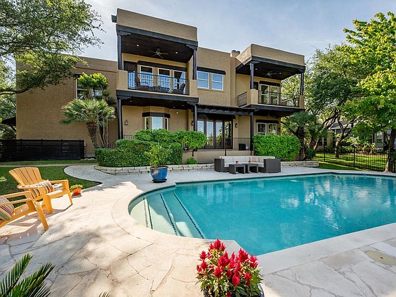 Unique custom built home in heart of Lakeway on 1 acre. Spacious lot w/massive oak trees. Easy walk to private HOA trail leading to Lake Travis & HOA day dock for lake access. Backyard goes beyond fence line to water. Relax w/ Hill Country views in private setting. Casual indoor & outdoor lifestyle. Wood beamed high ceilings Master suite w/ expansive windows & fireplace create relaxing retreat. Master & game room opens to large covered decks. Close to 2 marinas, tennis, golf, fitness. LTISD