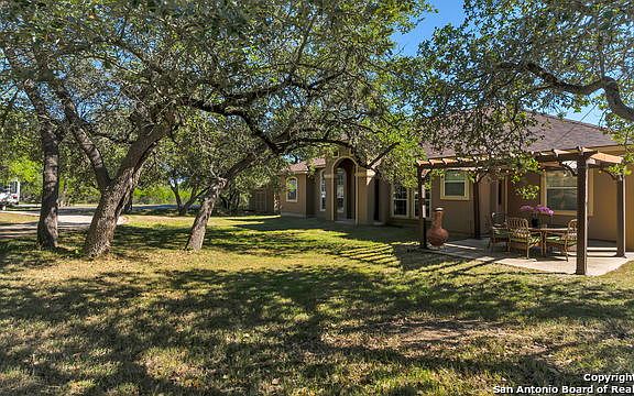 This 3 bed 2 bath sits just over 3.1 acres in the exclusive Springs at Rebecca Creek. The property includes rights to your own private part of the creek! the house sits further back from the road and has a circular concrete driveway with two concrete pads for RV and Boat storage and a 3 car carport with front and side access to the house. Detached is the shed with 2nd story access. Inside the house is an open concept living area with a peninsula bar height breakfast area and formal dining. The master bedroom has bay windows and master bath has custom shelving and two separate vanity sinks. Guest bedrooms are separate from master area with a full bathroom. The property line does ends in the middle of Rebecca Creek from two sides with a private staircase to creek.