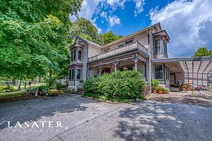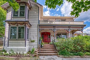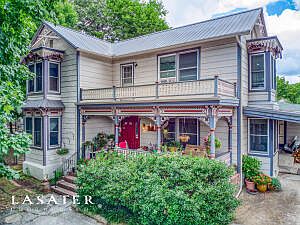 Own a piece of history! Built in 1892, this charming Victorian style home features 4 or 5 bedrooms and 3.5 baths. You will fall in love with the authentically ornate front porch, topped with a balcony, original curved staircase and original entry chandelier, beautiful hardwood floors, tongue and groove pine ceilings in several rooms, wood burning fireplace in the large den, and built in bookshelves. All the windows have been replaced and the home has a new metal roof. The upper level features two bedrooms and bathroom, as well as a separate apartment suite with private entrance. Apartment suite has a private entrance, one or two bedrooms of its own, as well as a kitchen, dining room, and bathroom, currently rented for $550 per month. Tenant wishes to stay if the new owner desires.