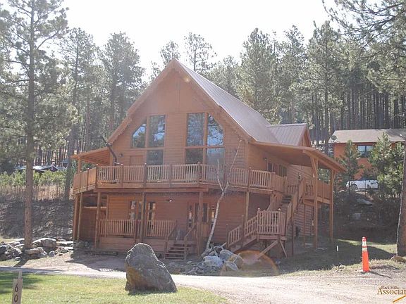 Dreaming of living in the heart of the Black Hills? This beautiful Chalet located just minutes from Keystone drinks in the views of Mt. Rushmore and the hills. On the main level of the home you will find a great room with large windows, one bedroom, one bathroom, the kitchen that walks out to a covered portion of the porch for easy outdoor entertaining, the large deck wraps around the front of the home for amazing views, including Mt. Rushmore! In the loft above the great room you will find the large master bedroom with a walk in closet and half bathroom. On the lower level of the home you have a large family room, one bedroom, full bathroom with a jetted tub, laundry hook up, and a music room or office area. This three level home is surrounded by the pines and breath taking views of the hills! This would make a great home, all seasons or just for summer fun! Come take a look!