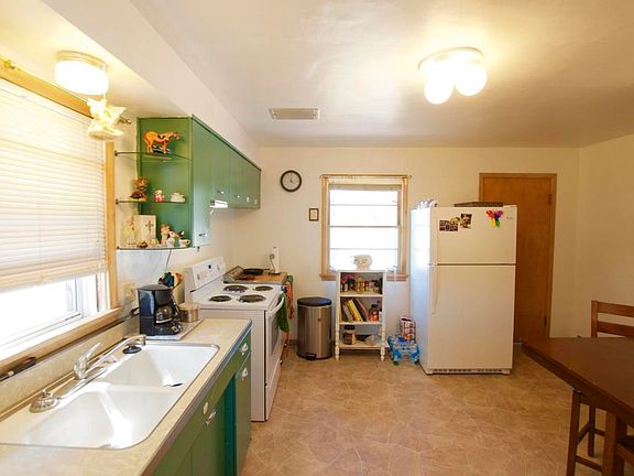 Located on four city lots, this home features a 2 bedrooms, dining area, and kitchen.