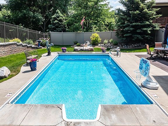 Your Personal Oasis Awaits You! Beautiful Custom-Built Home with Inground Pool and Oversized Garage with Shop Area. Pre-approved potential buyers may call or text 701-471-4299 for a private viewing of this home. Agents are welcome with pre-approved potential buyers. Custom built by K & L Homes in 2008. 5162 sq ft with an additional 1612 sq ft garage. Six Bedrooms and three and one-half bathrooms. This home has all of the amenities that a home that is built today would have. The Main floor features beautiful 14-foot ceilings and an open great room with views to the meadow area. TV room or study directly off the upper deck. Full bathroom adjacent to the main floor guestroom. Additional room for display, reading, or office area. Formal dining room with coffered ceiling. Built in cherry cabinets with granite sideboard. Butler's pantry directly off the formal dining room with granite counter, has a sink with garbage disposal and built-in dishwasher. The large storage pantry keeps all your kitchen staples and serving dishes within easy proximity to the kitchen. Gourmet kitchen with stainless refrigerator, double ovens, garbage compacter, and gas range with telescoping exhaust fan. The built-in automatic Miele espresso machine gives you the opportunity to be your own coffee barista. Directly off the kitchen is your informal dining area with additional views of the private natural habitat beyond. Enjoy that fresh brewed coffee from your deck that is easily accessible from the kitchen. The patio has and water spigot and natural gas connection for the grill. Master Bedroom with trayed ceiling. Master bathroom has ceramic tile heated floors with marble insets. Two sinks with granite counters. Large ceramic walk-in shower with extra jets. Corner whirlpool tub. The master bedroom walk-in closet has a built-in ironing board and full-length mirror and has direct access to the laundry area. The laundry room has a utility sink, granite counter and custom tile with a large coat closet and half bath. The cherry pocket door closes off the area from the main kitchen. From the front entrance of the house, you can access the lower level. The large family room has surround sound, and your television components can be stored in the pullouts behind the custom cherry cabinets. The blinds in the family room are remote controlled which allows you to conveniently shut out the light to make this room a home theater area. Thermostatically controlled gas fireplace. There are four bedrooms on this level and the fourth bedroom has a walk-in storage area. There is a full-size refrigerator, microwave, dishwasher and sink with garbage disposal. The under stairway custom wine cellar features wine bottle racks and a cooling unit for proper climate control. From the lower-level patio doors your summer oasis awaits you. The 14’ by 28’ in ground heated pool is the perfect resort setting for you and your family. The electric pool cover helps to keep this pool clean and low maintenance. The outdoor patio area is prewired for a hot tub and there is a natural gas connection for the grill. The natural gas firepit complements the backyard area. The backyard area is enclosed with a maintenance free fence and brick wall. There is an underground sprinkler system, drip system for plants and underground drainage. Landscape lighting and flagpole with light. The 3 stall, 1612 Sq ft garage is fully finished and will accommodate four vehicles. There is a 19’ x 21’ shop with a workbench. Two ceiling mounted natural gas heaters, one for the garage area and another for the shop. Central vacuum, surround sound and security system all professionally installed by Pacific Sound. Two zone heating/cooling system. Additional shelved storage area adjacent to the utility room on the lower level. Outdoor 8’ x 8’ storage shed. 2022 Taxes $8596. Zero balance on specials.