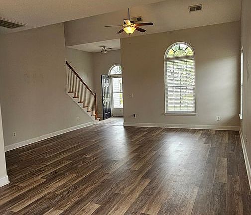 Spacious 5-bedroom, 3.5-bath home in the desirable Hunters Ridge Crossing community. Built in 2009, this two-story property offers two primary suitesone on each level! Features include an open-concept great room with vaulted ceilings, a modern kitchen with stainless steel appliances, granite counters, breakfast bar, and pantry. Flooring consists of new vinyl plank downstairs, hardwood upstairs, and tile in bathrooms and laundry areas. Enjoy a large corner lot with a fully fenced backyard overlooking a pond, plus a screened porch and a two-car garage with additional driveway parking. Community amenities include a clubhouse, pool, and recreation area. Conveniently located near schools, shopping, dining, and shore life attractions. Pets considered with fee and approval Move in date may vary from availability date and is contingent upon approval of application. Please allow 24 hours to show
