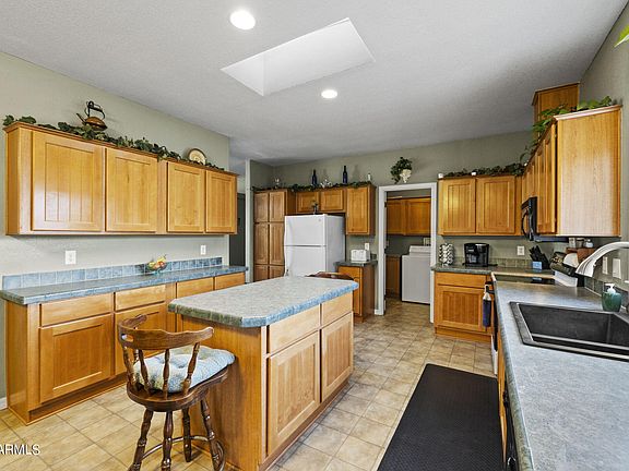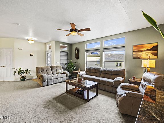 Nestled in the heart of Camp Verde, discover a home that balances practicality with scenic charm. Enjoy panoramic mountain views from every angle of this well-designed property, featuring a split floor plan for added privacy. The spacious living room and functional eat-in kitchen cater to both comfort and convenience. A detached garage and sprawling backyard with a soothing water feature complete the package, offering a blend of simplicity and functionality against Arizona's beautiful backdrop.