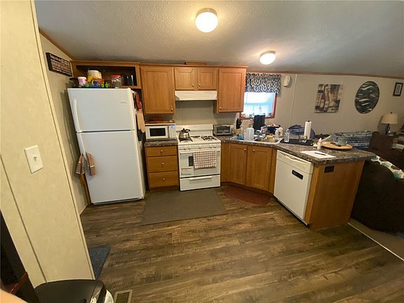 welcome to quiet and peaceful, forest brooks mobile homes! Featuring this lovely easy living corner lot. includes all new beautiful landscaping featuring a rock garden, all new mulching, and a line of beautiful young spruces for even further privacy, and to catch any possible road debris. the inside has a lovely large open floor plan. A very private master bedroom and master bathroom, with the other bedrooms and bathroom situated on the other side of the trailer, it does make for an easy living style home. The property is in good condition, along with new vent exhausts systems in the bathrooms, new bathroom fixtures, a new shed that is bolted to a cement filled base. that includes a 10x10 gazebo inside that can be installed outback.it does include as well a gas stove, a microwave, dishwasher, dryer and washer. Furnace and ac are original from 2018.