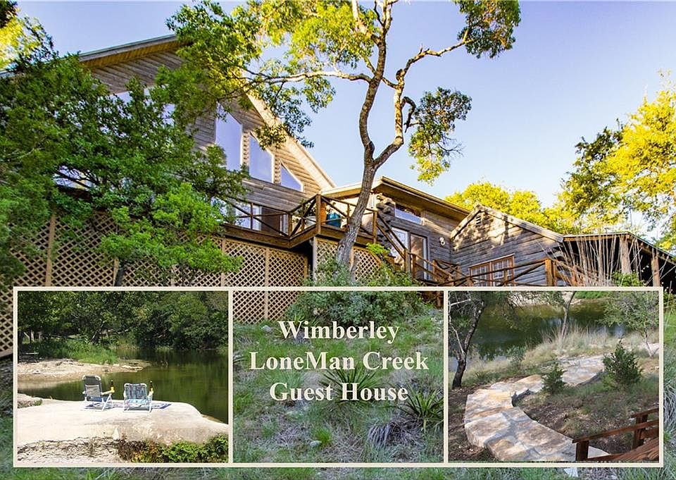 Relax on your own piece of Wimberley's Heaven. This fabulous light log home, with an attached guesthouse, sits on a deep and serene part of Loneman Creek. Sit on the private balcony and enjoy the sounds of the waterfalls and the diverse bird habitat. The main home is an open concept with soaring cathedral, beamed ceilings, huge windows and hardwood floors. The charming guest house, 1100 Sq ft log cabin, has its own kitchen, bath with claw foot tub, and deck overlooking the creek. Relax, your home.