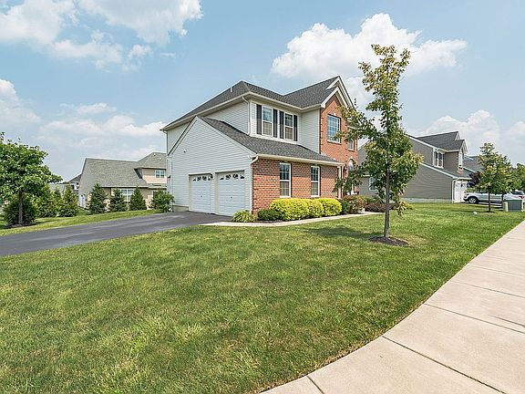 Welcome to this gorgeous home situated on a premium corner lot in the highly sought after Pennland Farm community! Practically brand new, this home is 5 years young and perfectly move in ready. The front of this beautiful brick home has stunning views of green, open community space. Enter the front door where you are welcomed by the two-story foyer that is brightly lit by large windows and natural light. A formal living room connects to the formal dining room and features a bumped-out bay window and shiny hardwood floors that extend throughout the first floor. Stately columns separate the two rooms while keeping the floor plan flowing openly. Continue to the amazing white kitchen showcasing granite countertops, tiled backsplash, stainless steel appliances, a gas cooktop with ventilation hood and built in oven/microwave. Connected to the kitchen is the breakfast area with sliding glass doors that lead to the new deck! The family room is spacious and open and is centered around a cozy gas fireplace. Completing the first floor is a large laundry room with sink, half bath with a pedestal sink and access to the two car garage. Upstairs, the large main suite is spacious and bright featuring neutral tones and two walk-in closets. The attached main bathroom has a large soaking tub, glass walk-in shower, and a large double sink vanity. The vaulted ceiling and large windows make the bathroom airy and relaxing. Three additional spacious bedrooms all with ample closet space and a full hall bathroom with double sinks and a shower/tub combo complete the second floor. Out back, the new trex deck provides plenty of room for outdoor barbecuing and entertaining, and offers great views of the surrounding neighborhood. The large basement can easily be finished off to add plenty of additional living space. Close to shopping and dining, this immaculate home awaits its new owners!