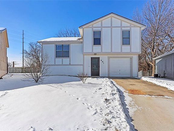 Here is your chance to own an affordable home in Olathe located in a cul-de-sac! Great location, close to fantastic schools, backs to trees, a beautiful lake with walking trails, shopping, and restaurants! Home has 3 bedrooms that are of decent sizes and has potential for a non-conventional 4th bedroom or home office in the basement. Primary bedroom boasts 2 seperate closets. Eat-in kitchen with stained wood cabinets opens up to back deck. The deck overlooks spacious fenced in backyard for picnics, gardening, etc., with a large shed for gardening tools. This is an opportunity you won't want to miss!
