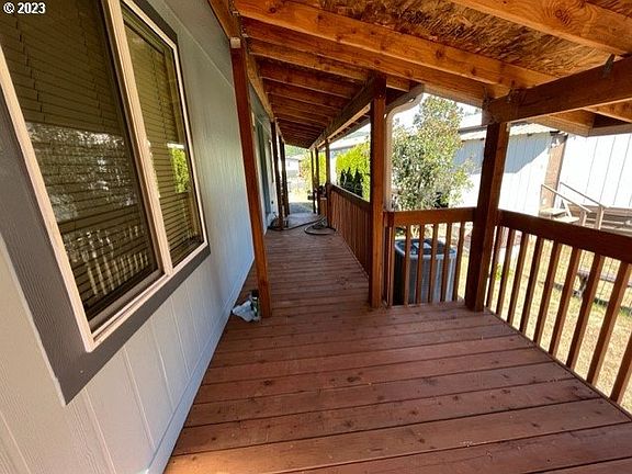 Park approval required. Quiet Park living in Clatskanie! Immaculate energy star MF home offers open floor plan with dining room, island with eating area, vaulted ceilings throughout with laminate floors. Stove, built in microwave, refrigerator is set up for ice maker. A/C!! Separate laundry room includes washer & dryer. Nice deck for your entertaining overlooks large green space & Clatskanie River. Tuff shed included. Walking distance to eateries and shopping. Lots to do in Clatskanie: public swimming pool, Saturday market in the park and more. Space rent only 380.00!