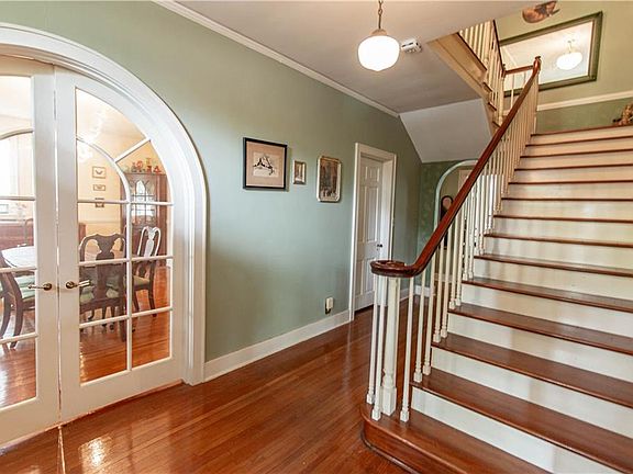 Allow us to open the door to this stunning one of a kind home, located on a large well maintained corner lot with mature trees. Once inside this 5 bed 2.5 bath home you'll immediately notice the majesty of the timeless hardwood floors and cherry staircase. A true entertainers delight with a 19x32 formal living room with fireplace, 14x17 dining room with bay window and 13x18 kitchen that includes full appliance package. The spacious family room offers numerous built-ins with 2 openings to the fenced-in decks, one having a 8x12 solarium. Now on the second floor a true oasis can be found in the 19x19 Owner's suite along with a spacious closet and oversized spa quality bathroom. 2 additional bedrooms are located on the 3rd floor. Other features include: A beautiful set of French doors and hand crafted curved doors in the DR, Approx. 500 SF rec room in basement with pool table, and a 2 car attached garage. Call TODAY to set up your private showing!!!