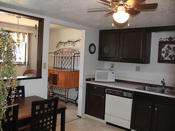 2 bedroom one bath daylight lower level condo with 55+ requirements. Nice kitchen/dining area with lots of cabinets. Good sized master bedroom and guest bedroom along with a full bathroom . Front walk in storage/coat closet. Single attached garage. No pets allowed. Sold as is. Buyers agent to verify taxes, specials, and square footage.