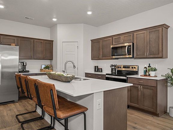 Dalton Creek presents the Cali, D.R. Horton's desirable single-story floor plan. This idyllic 4 bed, 2 bath home boasts an open floor plan, perfect for entertaining and modern living. Enjoy a spacious kitchen with quartz countertops, stainless steel appliances (electric stove, microwave and dishwasher included), and oversized island. Relax and unwind in your roomy primary suite, complete with private bath, double sinks, & walk-in shower. Three additional rooms are thoughtfully positioned for convenience and privacy. Enjoy a cup of tea, coffee, or beverage of choice on the covered patio off your slider doors, also perfect for summertime gatherings. Full house gutters, full yard landscaping w/ irrigation also included! Photos are used for representation, please verify interior and exterior colors with listing agent.