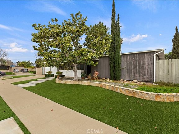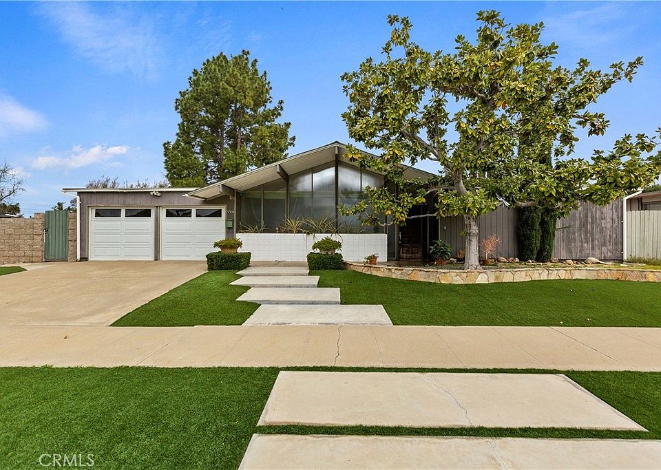 Welcome Home! This Amazing Mid-Century Modern home built by Joseph Eichler in the Fairmeadow tract in the City of Orange is absolutely beautiful. This home's stunning curb appeal is just amazing! With water-wise landscaping featuring artificial turf and manicured magnolia tree, it definitely helps the water bill all year round. Entertain friends and family with the pool and spa time and time again. The single level home has over 2100 square feet of inviting living space including a permitted enclosed atrium of over 450 square feet! With walls of glass to enjoy the view of the atrium room as well as the beautiful pool view, the natural light is amazing! The living room features a floor to ceiling fireplace with high beamed & wood ceilings classic of this architecture. The kitchen features Corian counter-tops, light wood cabinets and beautiful glass front built-in buffet has an adjacent informal dining/den area. This perfect floor plan offers a private en suite master bedroom on the west side with access to the pool area & 3 bedrooms on the east side for a nice division of space. The primary suite features 2 walk-in closets plus a 3/4 bathroom with shower. The guest bath with shower over tub has white tile & neutral finishes. Enjoy many upgrades including dual-pane Anlin windows & doors, custom porcelain non-scratch tile floors though most of the main living area & primary bedroom, hearty travertine flooring in the atrium, epoxy garage floors & more. The huge rear yard is an Entertainer's delight with in-ground pool & spa plus tons of patio space for fun! Enjoy the spacious full 2 car garage not offered on all Mid Century homes in this tract. Located in the Villa Park Schools attendance area and close to shopping, dining, churches and the Taft Library. The last home that was available in this tract was OVER A YEAR AGO!!! Don't miss this rare opportunity.