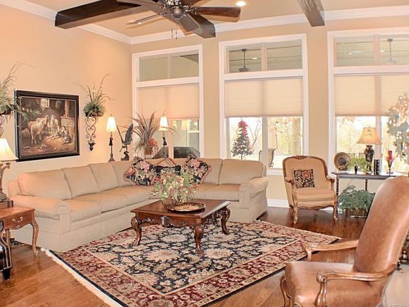 Gorgeous Lot w/trees on Bluff Over looking Ark. River, fantastic kitchen w/beautiful island, great floor plan. 1 story home. Professionally landscaped. Safe room 6x8x8, 10' doors in garage 6' walls in house & Split bedroom w/plantation shutters!