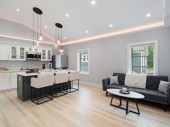 The spacious open floor plan effortlessly connects the kitchen, living, and dining areas. All new large energy efficient windows bathe the space in natural light.
