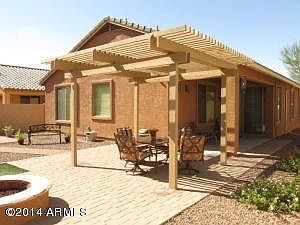 Shows like a model home! Pride of ownership prevails in this beautiful 3 bedroom home with option for 4th bedroom (currently a den). Lots of upgrades include gorgeous laminate wood floors in all the main areas, upgraded tile in the wet areas and carpet in the bedrooms. The kitchen includes upgraded cherry cabinets and all black appliances with eat-in area. The great room can accommodate a formal dining area if needed. The master suite includes double sinks, separate tub/shower, private toilet room. Outside enjoy the south-facing back yard with extended pergola area and covered grilling area. The gas firepit is great for cool winter nights. Extended paver patio, paver area already plumbed w/electric for hot tub and a paver walkway leads to the gate. Private yard with no only one neighbor.