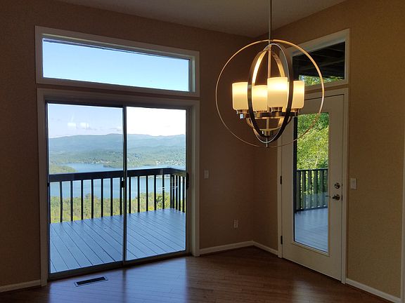 A SPACIOUS MOUNTAIN TOP HOME WITH HUGE LAKE & MOUNTAIN VIEWS! Located at the top of the mountain in the paved Eagles View Community, this recently updated 4 bedroom/4.5 bathroom home offers an open floor plan, great room with soaring walls of windows creating a light atmosphere & showcasing the amazing views & a fireplace, a 2nd fireplace & wet bar in the living room on the terrace level, Bamboo flooring, a large kitchen, master on the main with glassed-in tiled shower in master bath, 3 levels of open air & covered decks to enjoy the views from, 2 car garage + 1 car garage, PLUS mountain top privacy.