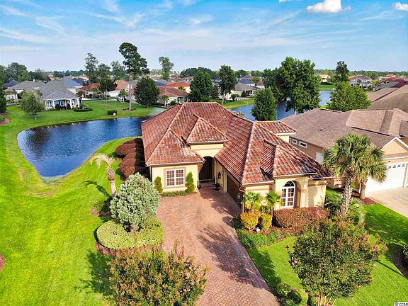 Immaculate 3 bedroom /2 bath Mediterranean style home w/bonus room - and oversized garage - nestled on the water next to a pristine fountain in the much sought after private / gated Bluffs on the Waterway community in Carolina Forest. Owners are builders and interior decorator - This home is outstanding inside and out: unique ICF construction, Gourmet kitchen with Viking appliances - gas stove , open great room with beam ceilings and stunning fireplace. Walk through French Doors into cozy Carolina Room or enjoy the Eastern exposure on the lake from the private screened porch with summer kitchen - lots of storage - great corner lot - lush landscaping. On top of this all, enjoy the desirable Bluffs amenities: two clubhouses - one with community pool, cabanas and tennis courts - and a second (the boathouse) on the Intracoastal Waterway w/private boat ramp and storage. Hard to beat this one.SQUARE FOOTAGE IS APPROXIMATE AND NOT GUARANTEED - BUYER IS RESPONSIBLE FOR VERIFICATION.