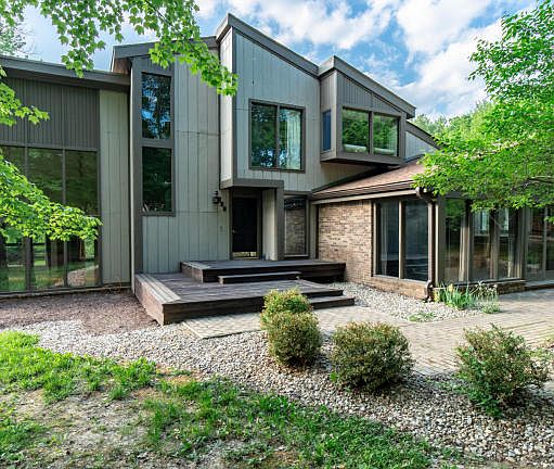 Tranquil and serene property in the Anchorage school district. This custom built contemporary home named ''Bellevue'' was designed and built by local architect Cecil Brumley as his personal residence in 1979. This 3 bedroom, 2 1/2 bath home has spectacular features such as Italian tiles, stained glass window, teak floors imported from the Virgin Islands, 3 original George Nelson Globe light fixtures, copper sink, exposed brick walls, three decks, and a wood shop. The home sits on almost 2 acres surrounded by trees making this a private oasis right in the heart of Anchorage. There are windows galore that help bring the outside in. The family room has a wood burning (gas starter) fireplace to help warm those winter nights and the den has wall to wall shelves -