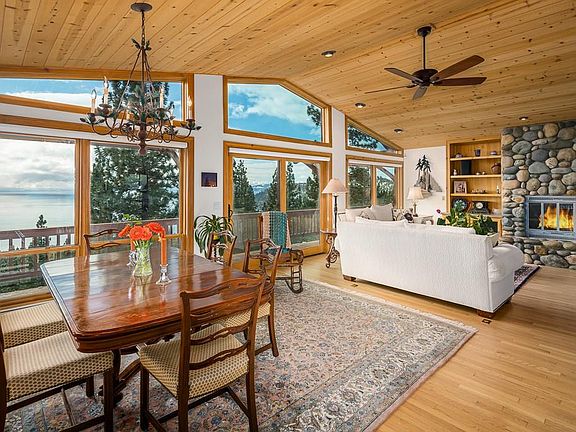 Spectacular panoramic lake view home on .84 acre lot w/ level access to main floor including kitchen, dining, living, half bath & master bedroom sitting at the end of no traffic Fallen Leaf Way with 2 - NV State Lands lots on one side and USFS on the other for exceptional privacy! Room for your entire family with 6 bed, 7 baths, a lrg game room w/ bunk area + bath, a lake view family room w/ a spacious bar, adjacent office + a lake view hot tub. This home was remodeled in 2007, 2015 & 2017 + a new heated paver driveway in 2020. Exceptional sunny southern exposure w/ decks on three levels with recent steel structural upgrades. This is the ideal level access home with one level living possible and room for everyone to stay home for COVID isolation in style. Automatic awnings covering both ends of the upper deck, DG lower patio with built in commercial style umbrellas in the back yard! Wolf appliances (incl. induction cooktop), mstr stm shower + tub.