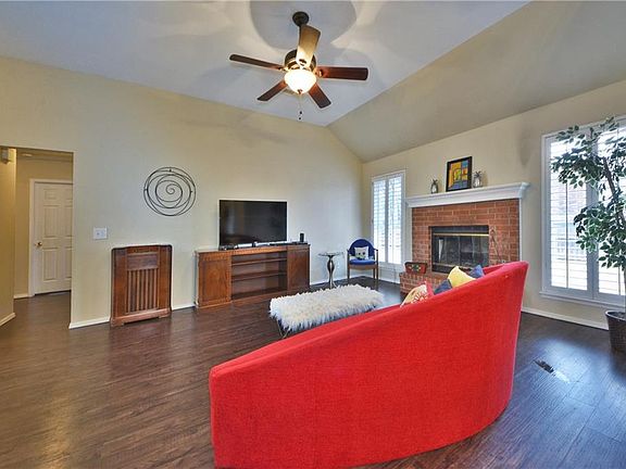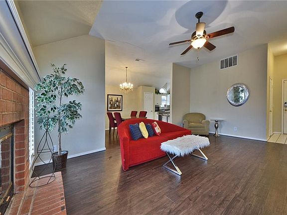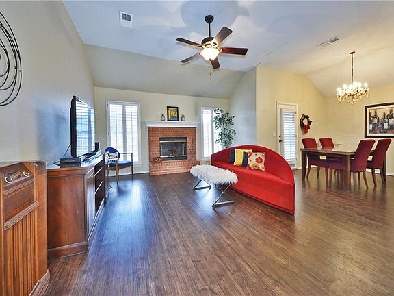 This stunning home offers a gorgeous brick fireplace with wood mantle in the living, as well as beautiful natural light and raised ceilings and updated wood floors. The kitchen provides an island, 5 burner stove, breakfast bar, and pantry. The dining room offers a beautiful 100 year old chandelier. The master is a true retreat with beautiful raised ceiling, and an en suite that boasts double vanities, walk-in shower, soaker tub, and double closets! This home also offers walk-in closets in both of the secondary bedrooms, as well as inside utility. The spacious backyard is a great place to entertain guests, or to relax under the covered patio!