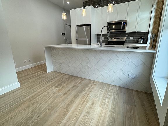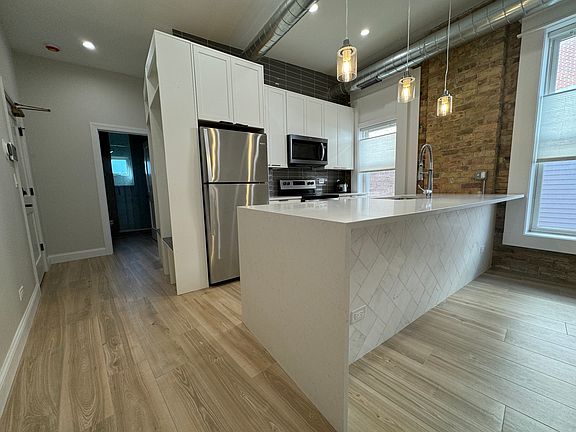 This charming and cozy junior one bedroom boasts high-end finishes and cutting-edge technology, including programmable smart locks for seamless keyless entry and Ecobee thermostats. The gourmet kitchen has 10-foot ceilings, exposed brick, and energy-efficient windows that flood the interiors with natural light. Indulge in a spa-like retreat in the primary bath that features a custom shower with beautiful glass doors. Enjoy central air conditioning, gas forced air heating, custom ceramic flooring, ample closet space, plenty of additional storage, and a commercial-size washer and dryer conveniently located just outside your door. Rent includes an assigned uncovered parking spot, water, sewage, and trash services. The tenant is responsible for electric, gas, and internet. (Gas is billed to each tenant based on square footage and building usage.) Video available upon request! One uncovered parking spot included in the back of the building. Video entry intercom security with smart locks and ECOBEE thermostat in each unit. Gas heat is based on each tenant usage and square footage.
