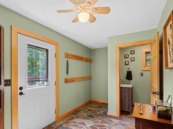 Private and comfortable, with many custom finishes, this 3BR/1.5BA home is a special find, indeed!. Use your own paths upon the 9.50 acres or head out further, and get on the local VAST trails for long range winter trips. This Danville location strikes the perfect balance of convenience to St Johnsbury and I-91, but with a long driveway to get you away from it all when you want to be. Enjoy summer breezes across vast fields on two sides of you while you sit on the deck. There is plenty of room for gardens or flower beds if you prefer. Newer appliances along with brand new countertops and tile work are just a few of the Kitchen upgrades. Most of the flooring is new and features dark engineered hardwood or slate, and check out that one-of-a-kind corner hearth where the wood stove is!!! The primary bathroom features a luxurious soaking tub (with separate shower), a new block top counter with double vanity, and half wall divider to the commode. A second floor family/TV room is a spacious option for numerous uses and adjoins secondary bedroom and/or office spaces. The basement is all heated bonus space, for workshop or work out... you pick. With all the interior improvements already done, you are left with nothing to do but ENJOY that Jotul wood stove on winter nights or entertain friends any other time you like. **Scheduled showings start at 9:00 on Saturday August 3rd**