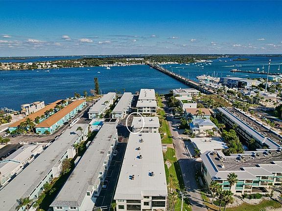 TURNKEY Anna Maria Island Florida, beach to bay condo available for your ticket to paradise! Come visit your 2 bedroom 2bath fully furnished condo when you need a getaway and enjoy the positive cash flow while you are away. This end unit has views of the intercoastal, the sparkling heated pool, and a great view of the Sunshine Skyway Bridge when its lit up at night. Gulf Watch is a hidden gem as it has both beach and bay access and allows WEEKLY RENTALS. Gulf Watch is easy to market with so many features of the community and walkability everywhere. Take a stroll along the beautiful beach or swim in the Gulf of Mexico using the condo's deeded beach access or head out to the bay with your fishing rod. A short walk to Bridge Street with fabulous restaurants, bars, shopping, miniature golf with a candy store right next door. The unit boasts a newly remodeled kitchen with stainless steel appliances and granite countertops and both bathrooms are beautifully remodeled as well. The master bedroom has an en suite bathroom and access out to the serene lanai. The spacious living room with all new furniture also has access to the lanai for your guests. The stacked washer and dryer are conveniently located in the kitchen. Newer AC (2019) and new hot water heater (2021). Two dedicated parking spaces are located below the building to shield your car from the elements. Other amenities are the community heated in-ground pool, pool bath and shower, and BBQ areas. This unit has a strong rental history with reservations already booked well into 2022. Don't let this one pass you by...its truly the full beach life experience!