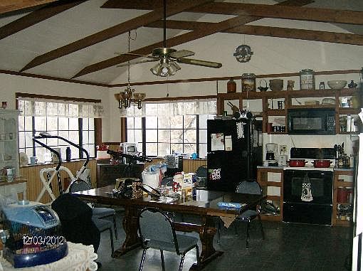 VERY UNIQUE A-FRAME HOME ON A QUIET WOODED LARE. THIS HOME HAS ABUNDANT STORAGE SPACE. Sissor-beams in kitchen. 26' ceilings. Seller to finish installing flooring and cabinent doors. Needs a little TLC to make it a real showplace.