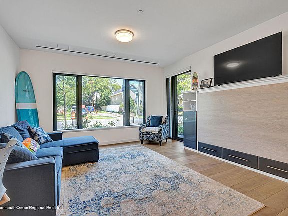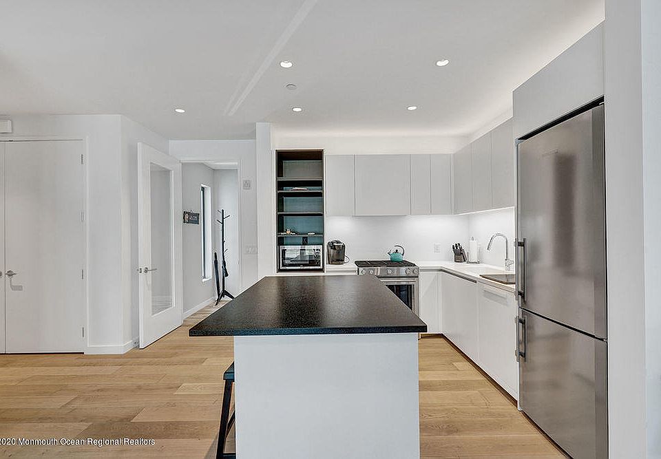The Monroe is a 34 unit luxury building perfectly situated between downtown Asbury and the boardwalk, and was designed by the architect Chad Oppenheim. This unit is offered by the original owner who purchased in 2017. The home shows like new and offers two bedrooms plus 2.5 ultra-modern baths. #107 offers the bonus of a private entrance from the exterior of the building. Pull into your parking space and your private foyer is directly in front of you. No elevators and no common hallways. The kitchen offers top of the line appliances and Italian cabinetry, there are two California Closet built in murphy beds (one full, one queen), custom electric window blinds on all windows, a large private balcony, dedicated parking, and fantastic common roofdeck with a fire pit and grill.
