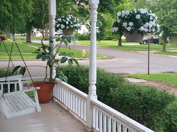 Beautiful Victorian home on a spacious corner lot. Three bedrooms, 2 ½ baths, dining room, living room, music room, den, foyer, utility room, and kitchen. Stained glass, pocket doors, and Victorian woodwork add to the charm. Storage areas in basement and attic. Gas fireplace inside and outside. Large wraparound front porch. Detached two-car garage with workspace and storage area. Beautiful inground pool with bathhouse, other water features, music and lighting. French doors open to pool area.