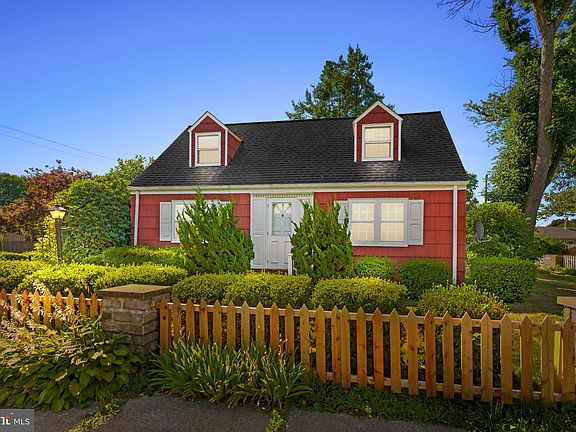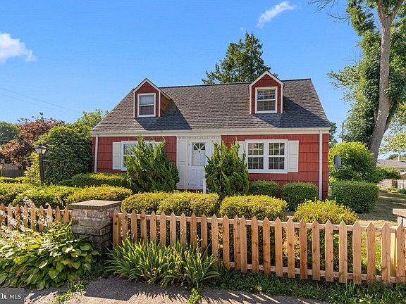 This cute, red, 3 bedroom Cape sits on a large corner lot with beautiful plantings and a new picket fence, new shutters and new garage door. The stone wall was recently repaired, the first floor interior was freshly painted and the water heater is new. The hardwood floors were sanded and refinished. The first floor is divided into two rooms by the staircase (living room and dining room). There is one bedroom on the first floor along with a full bathroom. The kitchen area has room for seating and access to a back door and enclosed patio, which is conveniently located off the driveway. Behind the patio is a detached one car garage. The lot has a large side and back yard for gatherings. The basement level has a finished gathering space and room for storage and that is where the laundry room is located.